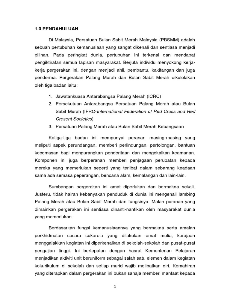 Saksama Tidak membezakan bangsa kaum agama darjat atau pendapat. Sejarah Persatuan Bulan Sabit Merah. PERSATUAN BULAN SABIT MERAH MALAYSIA Malaysian Red Crescent Society PANDUAN PERSIJILAN DAN SUKATAN PELAJARAN PBSMM Ibu Pejabat Kebangsaa Persatuan Bulan Sabit Merah Malaysia JKR 32 Jalan Nipah Off Jalan Ampang 55000 Kuala Lumpur Tel.